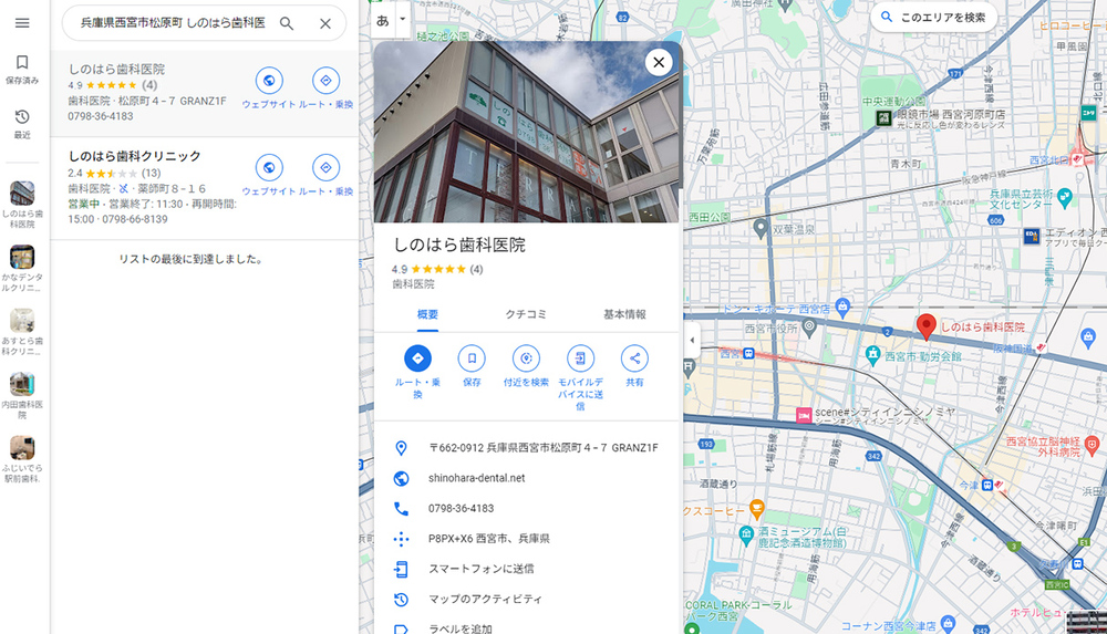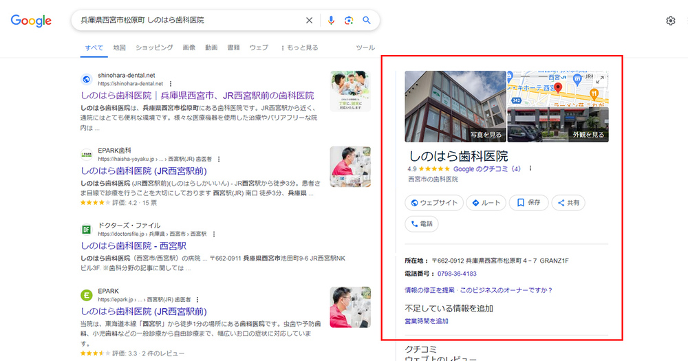検索結果の右側に、ビジネスプロフィールが表示されます。